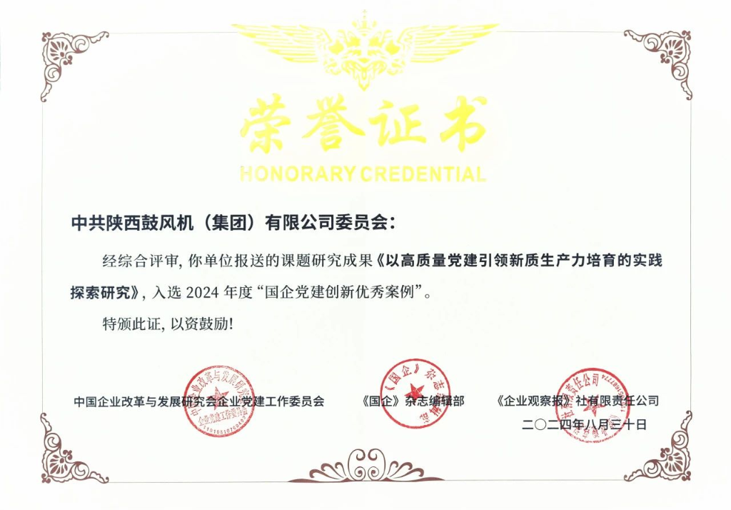 同时,陕鼓集团《以高质量党建引领新质生产力培育的实践探索研究》还入选 2024 年度“国企党建创新优秀案例”。